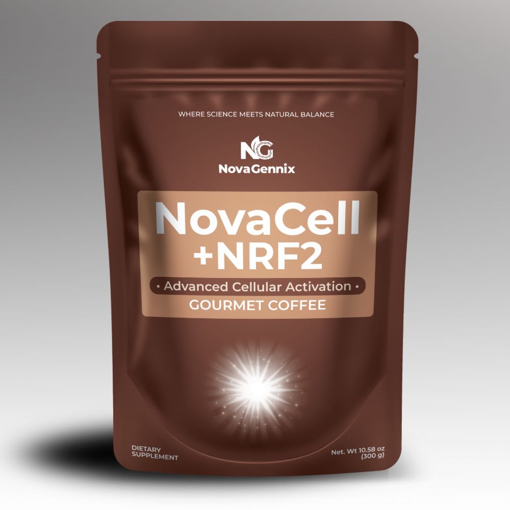 NovaCell + NRF2 Gourmet Coffee is an advanced functional formulation that integrates antioxidants, adaptogenic mushrooms, cellular superfoods, and essential micronutrients. Developed with Advanced Epigenetic and Nutrigenomic Technology, it is designed to support the activation of the NRF2 pathway, protect DNA against oxidative stress, and promote mitochondrial energy, fostering cellular well-being and daily vitality in a balanced gourmet experience.